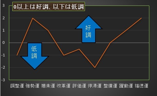 各時期の運勢の強弱のイメージは上のチャートのようになります。
